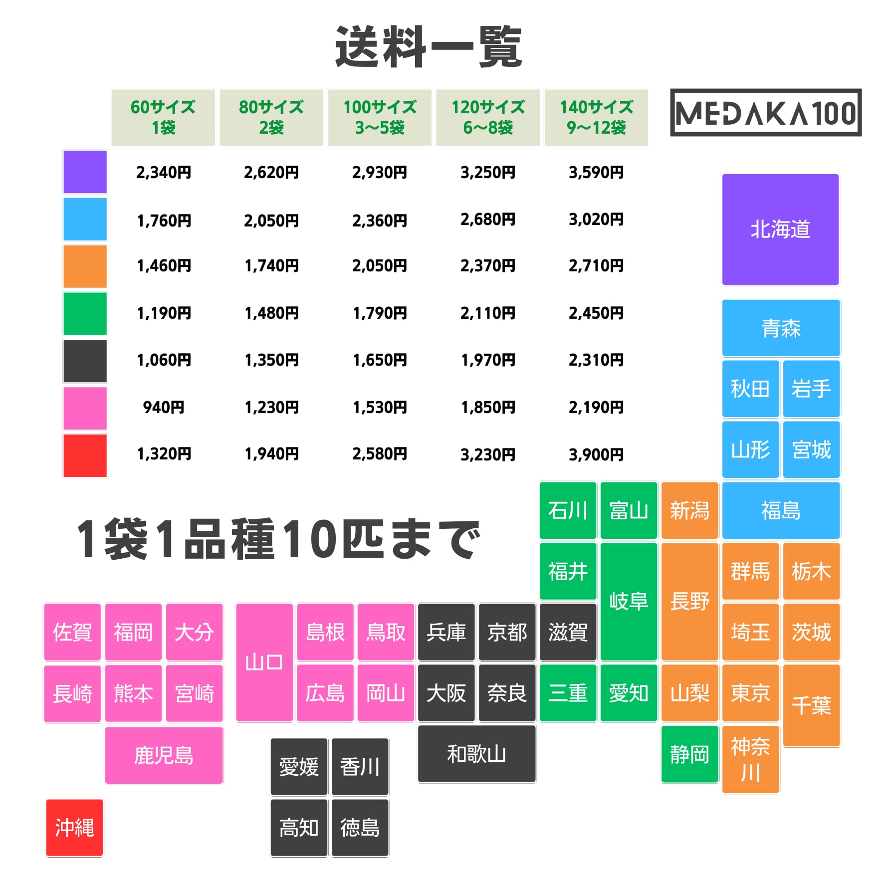 ・同一品種10匹以下の場合